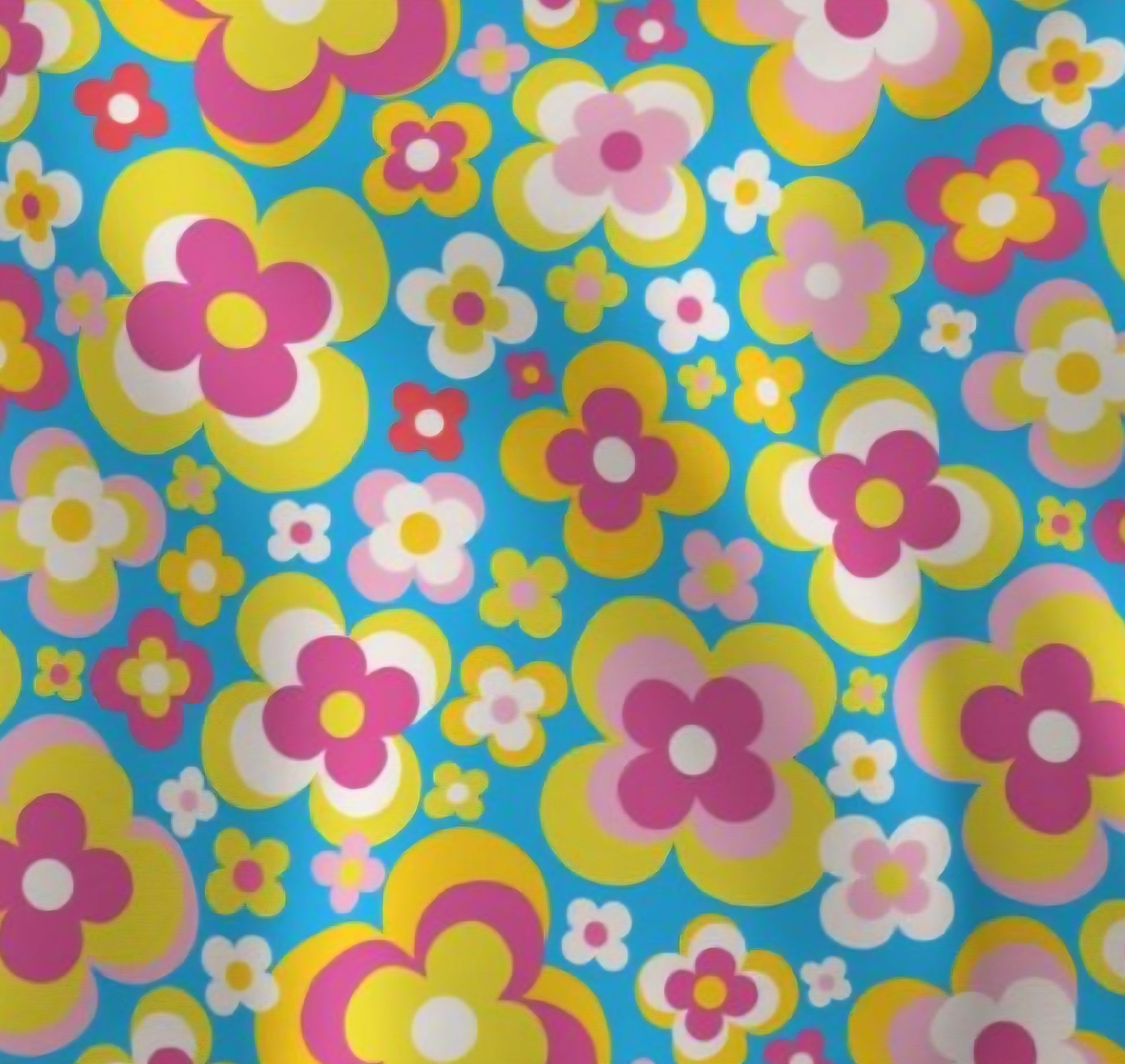 70s Groovy Magenta Yellow Flower in Bright Sky Blue Scrub Caps...