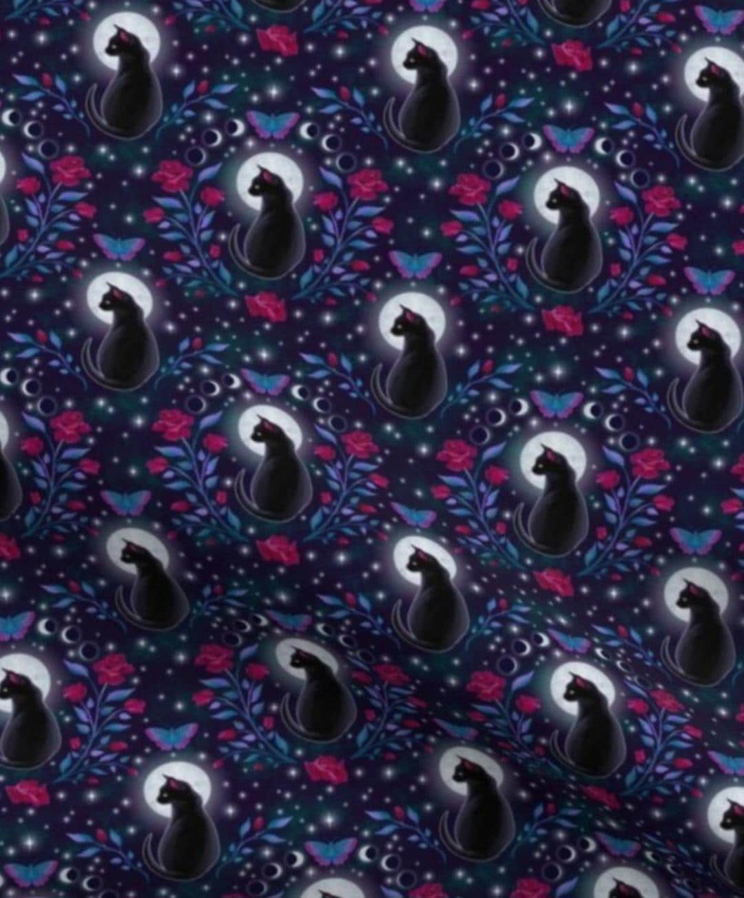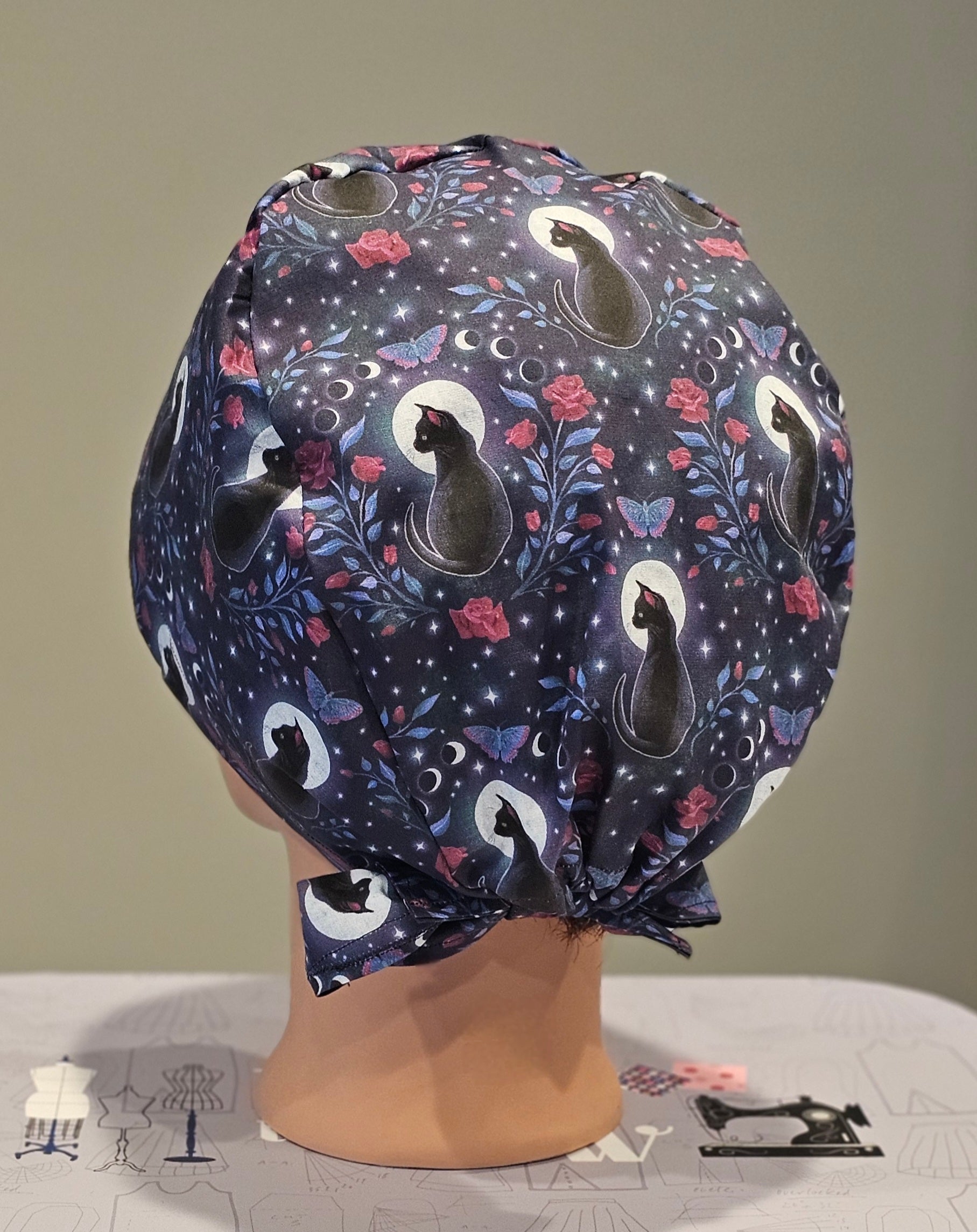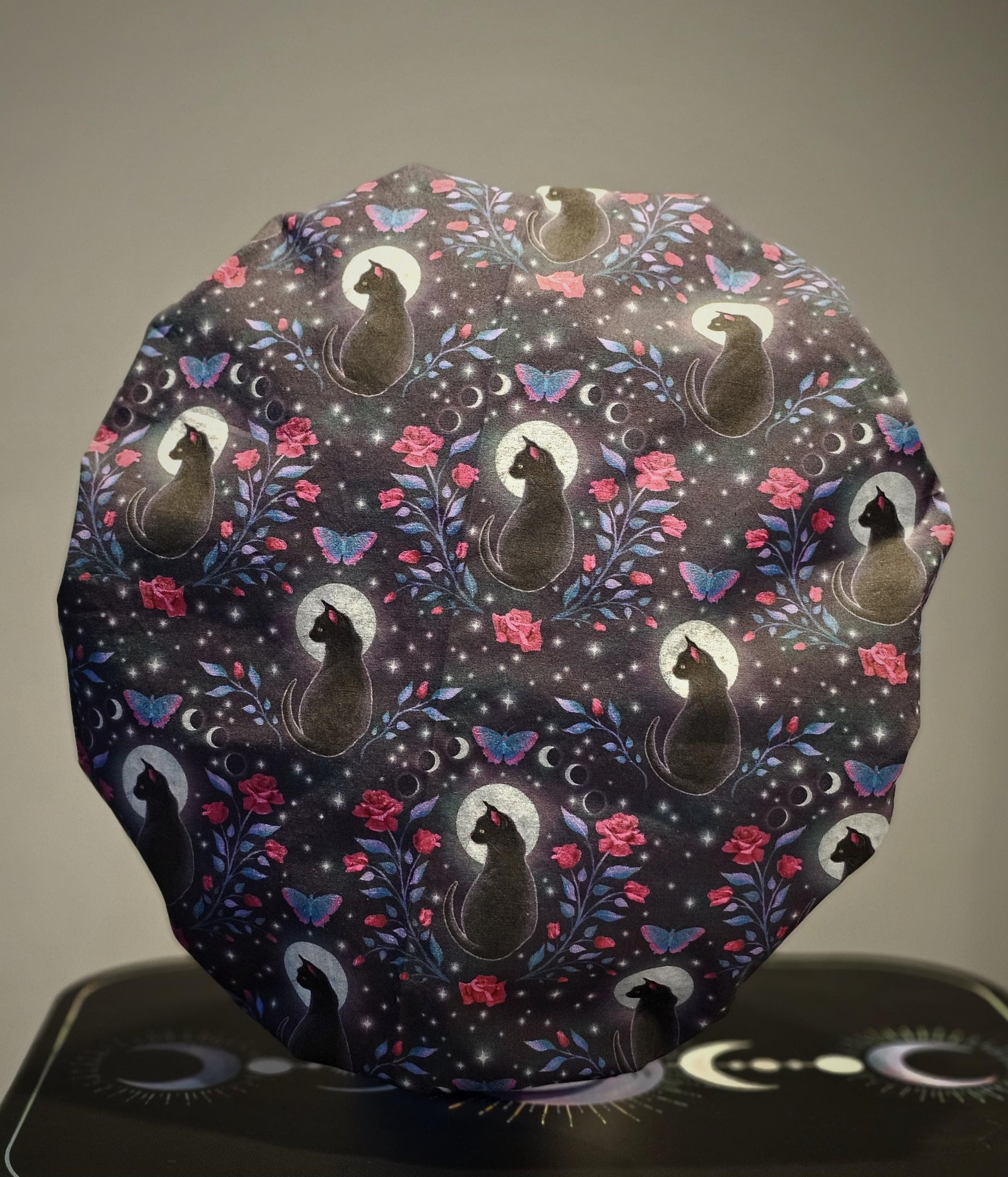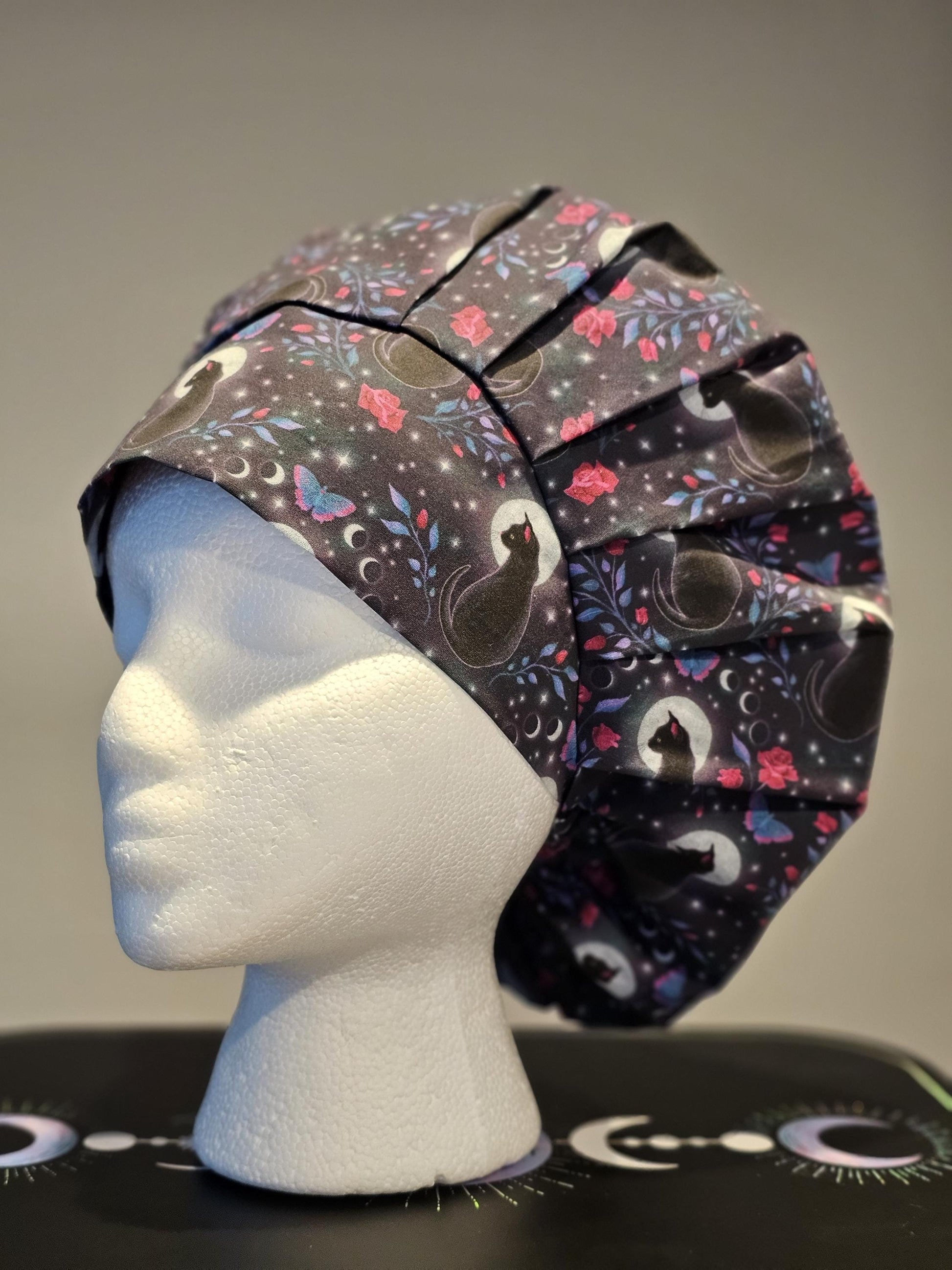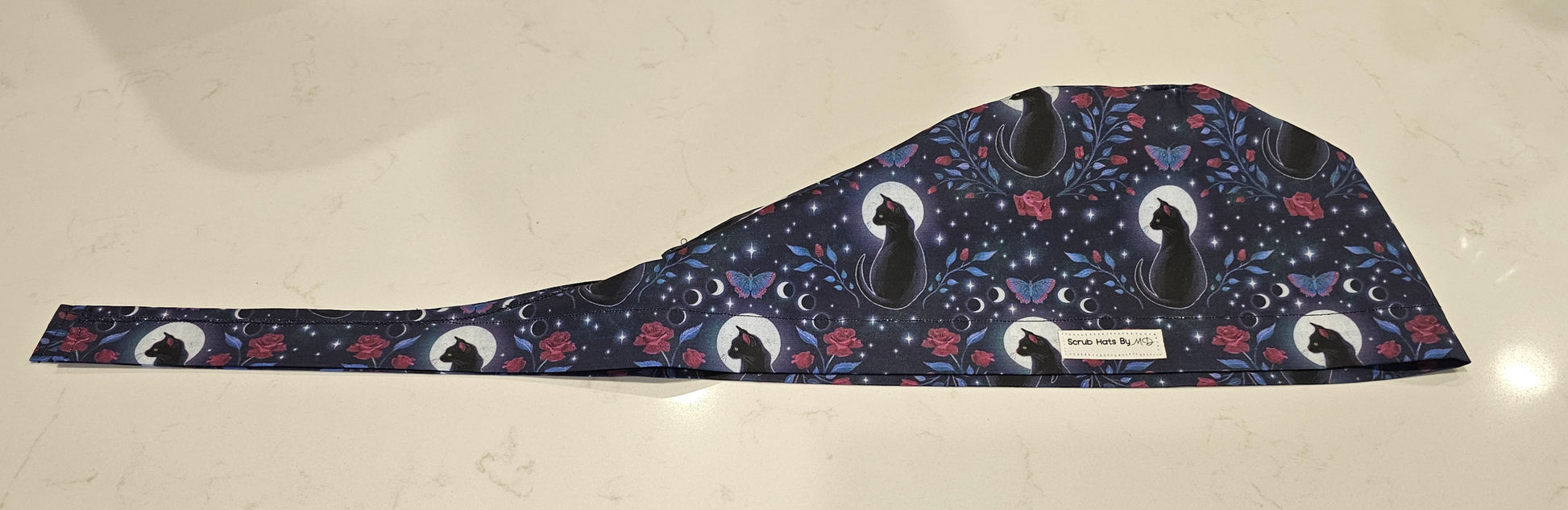 Moongazing Whimsigothic Black Cat with Roses Scrub Caps