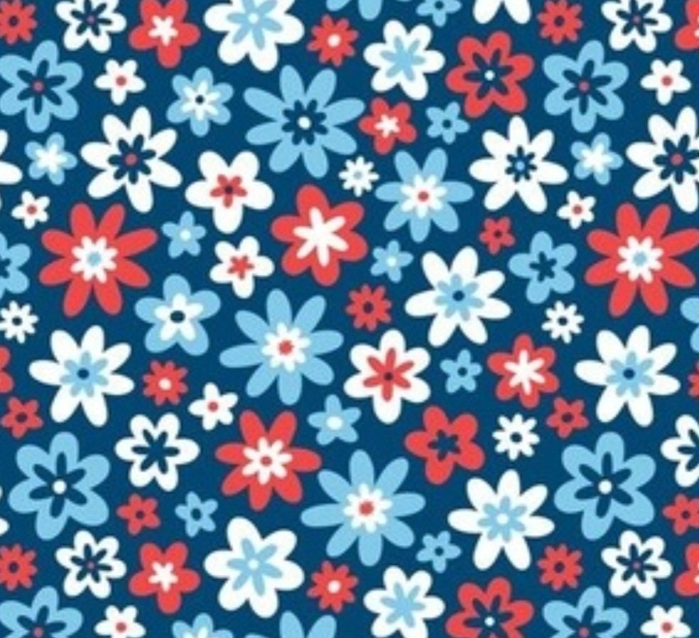 Retro Floral on Blue Scrub Caps