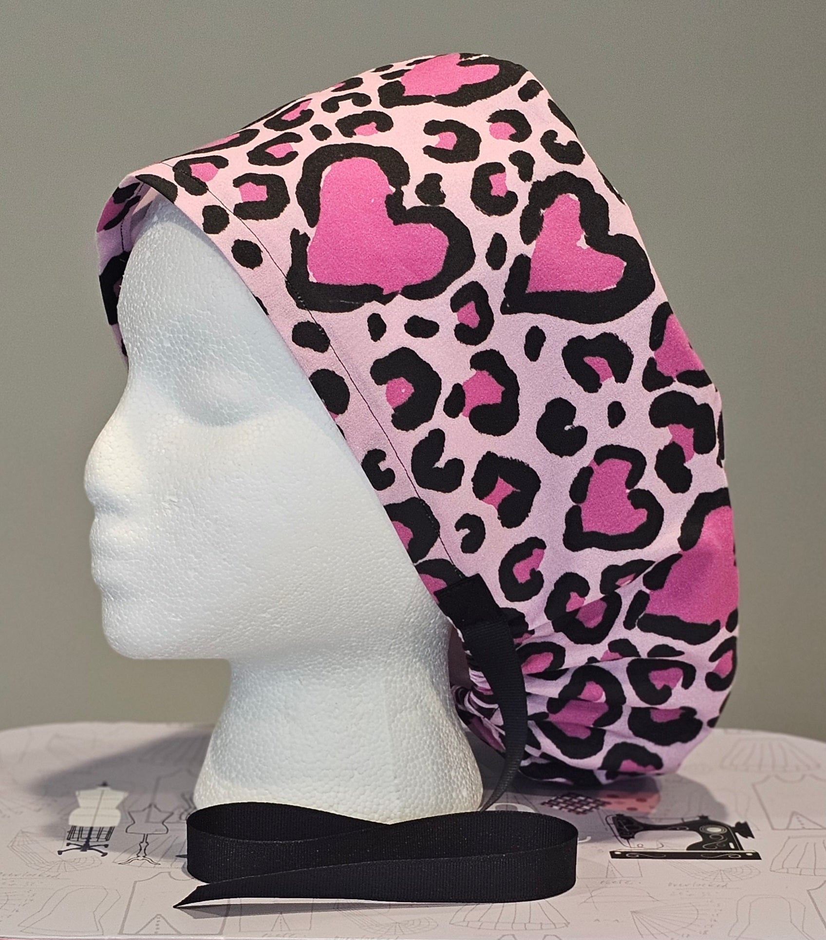 Surgical Scrub Caps Valentine's Day Heart Shaped Leopard Print in Pink Scrub Caps