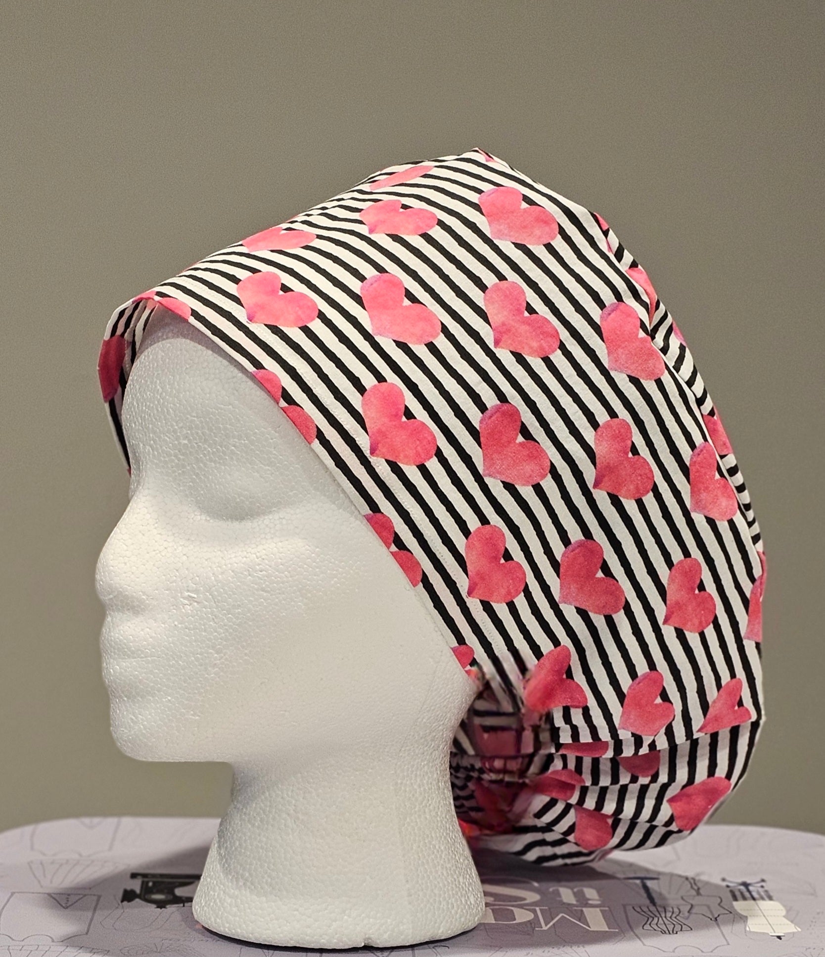 Surgical Scrub Caps Watercolor Hearts and Stripes Scrub Caps